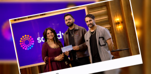 In front of the sharks, the entrepreneurs gave a live demonstration of the product’s capabilities. After they provided a brief written prompt that described a topic and mood, Soundverse AI produced a fully composed musical composition in a matter of seconds. The panel was quickly drawn in by the demo’s features, which included production-ready output, instrumental layering, and AI-generated vocals.